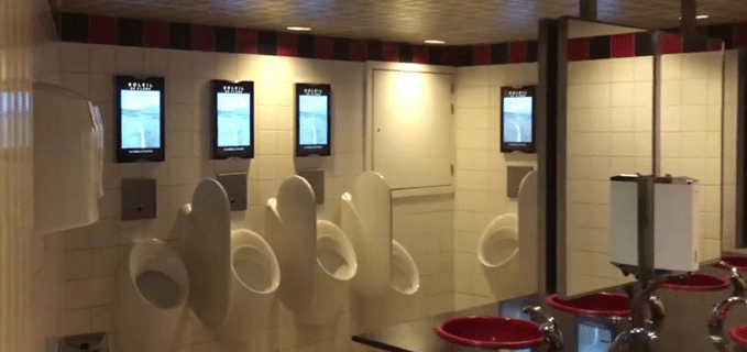 Elle a en effet, placé des écrans dans nos toilettes qui diffusent en permanence des publicités. Chez les hommes, l’écran sera placé au-dessus de l’urinoir et chez les femmes il sera en face de la cuvette. De quoi capter entre 30 secondes et 1 minute d’attention pour chaque personne ayant une envie pressante.