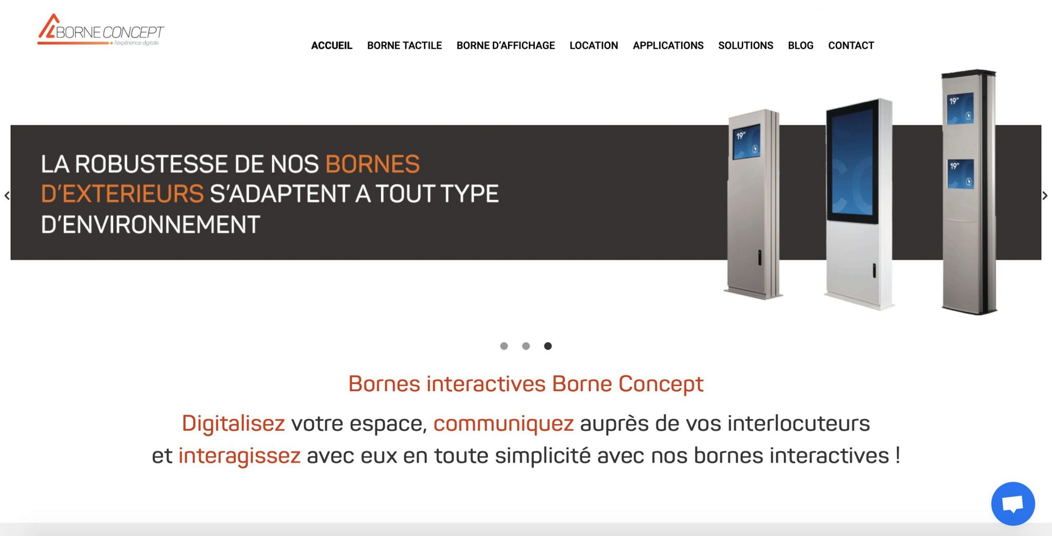 Dans un premier temps, il était nécessaire pour Borne Concept de donner de la visibilité à ses activités et ses produits. Ensuite, il s’agissait de pouvoir proposer aux clients la possibilité de réserver et acheter les bornes en ligne.